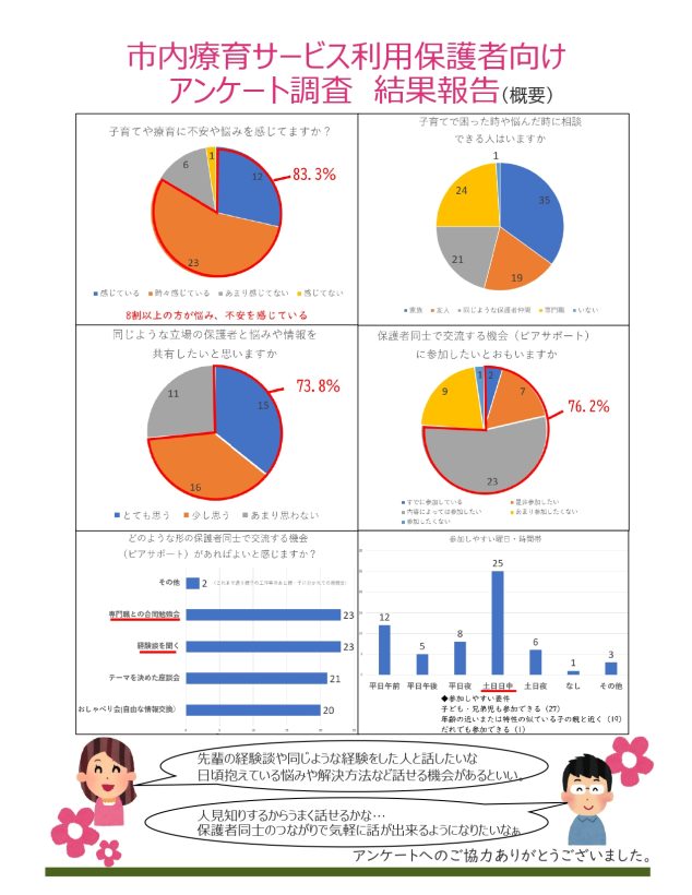 アンケートの結果、子育てや療育に不安を感じている方が8割以上